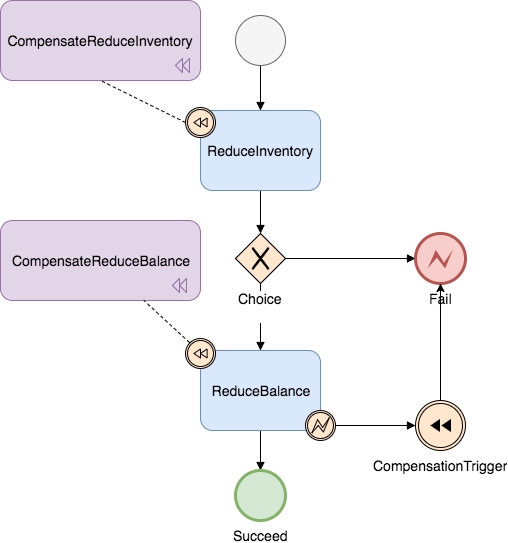 状态图中一个节点可以是调用一个服务,节点可以配置它的补偿节点